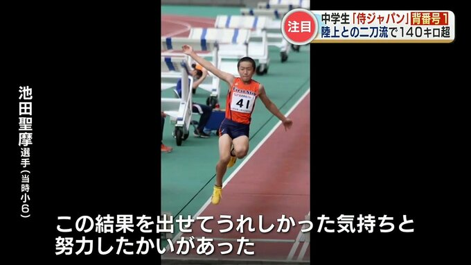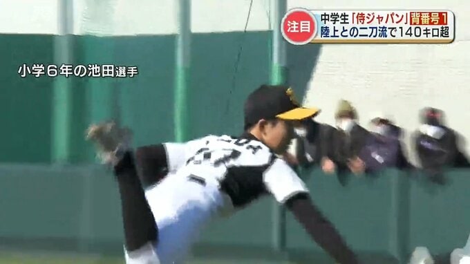 3年前、小学6年生の時、池田選手は福岡ソフトバンクホークスのジュニアチームでプレーする一方で・・「走り幅跳び」とやり投げの小学生版の種目、「ジャベリックボール投げ」の熊本県大会で大会記録を塗り替えるなど陸上でも活躍していました。