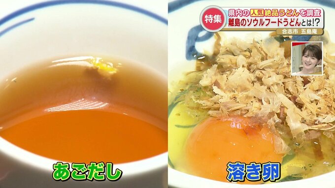 食べ方は、あごだしのツユとだし醤油を混ぜた溶き卵の2種類から自分好みで、五島うどんを楽しむことができますよ。