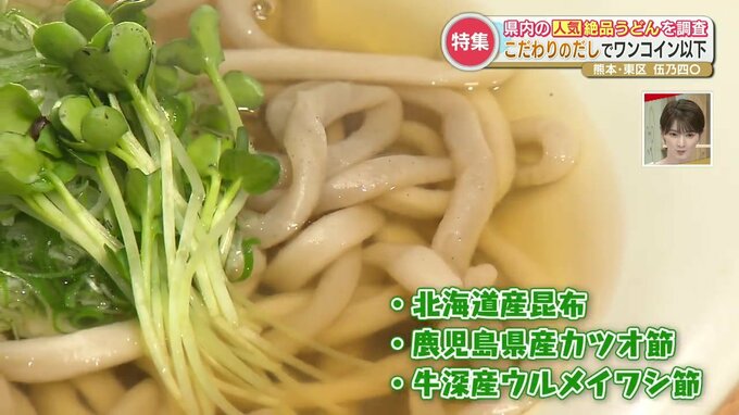 こだわりは、北海道産昆布を始め、カツオ節やうるめいわし節をブレンドし、旨味たっぷりの風味豊かな出汁に仕上げています。
