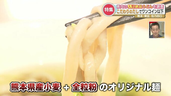 その出汁に合わせるのが、熊本県産の小麦と全粒粉をブレンドしたオリジナルうどんです。
