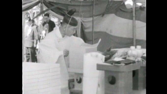昭和34年(1959年)4月、熊本城天守閣再建の起工式の映像です。