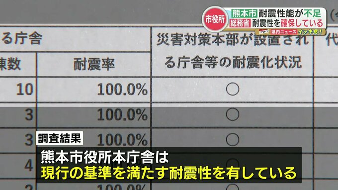 耐震性能が不足していると有識者会議が示した熊本市役所本庁舎ですが、国の調査では防災拠点としての耐震性を満たしていることが分かりました。