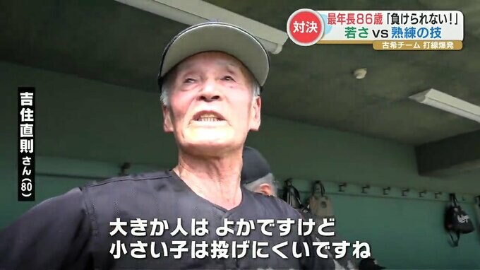小学生の子どもたちと、古希(こき)の野球チームが対戦する野球大会が開かれました。若さか、熟練の技かどちらに軍配が上がったでしょうか。
