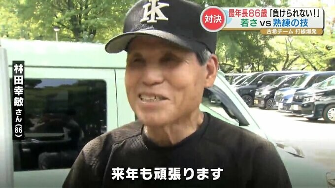 林田幸敏さん(86)「ライト前ヒットを打とうかなと待っていたんですが来年も頑張ります」