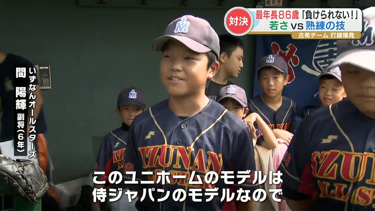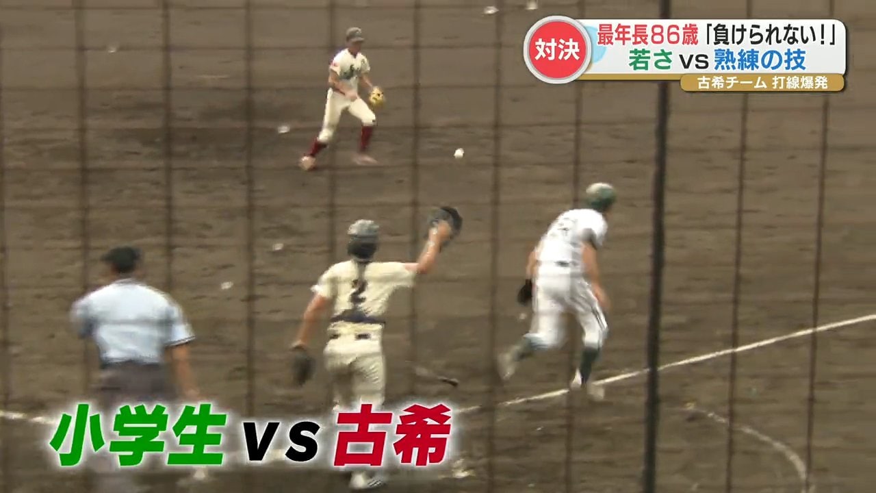小学生の子どもたちと、古希(こき)の野球チームが対戦する野球大会が開かれました。若さか、熟練の技かどちらに軍配が上がったでしょうか。