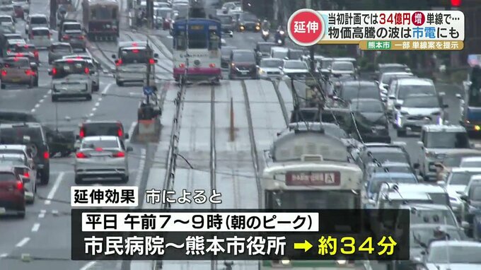 市によりますと延伸が実現すれば、平日の午前7時~9時までのいわゆる朝のピーク時に市民病院と熊本市役所間を約34分で結べるということです。