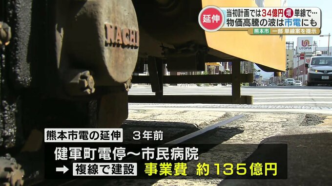 熊本市電の延伸を巡っては、3年前に市が「健軍町電停~現在の市民病院」までを「複線」で建設した場合の事業費を約135億円と試算していました。