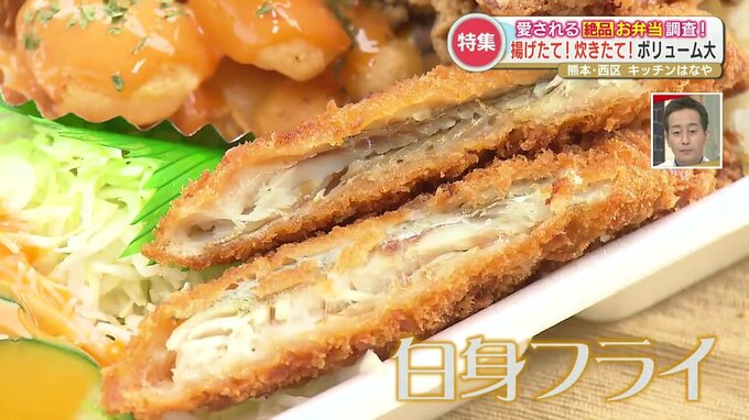 上田さんのオススメは、エビマヨ弁当にもトッピングされている「白身フライ」。ふんわりしているのが特徴です。