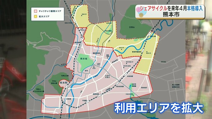 10月には、利用できるエリアを崇城大学(そうじょうだいがく)や熊本電鉄の北熊本駅、東海大学の熊本キャンパスの周辺にも拡大し、自転車の台数も年内には1100台に増やす予定です。