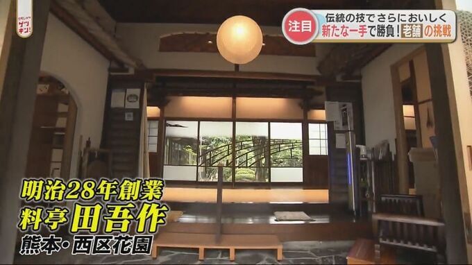 続いては、熊本市西区花園(はなぞの)にある明治28年創業の老舗「料亭田吾作(たごさく)」郷土の素材をふんだんに使用した懐石料理が中心の店ですが、こちらの新たな挑戦とは?