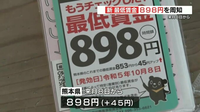 10月8日から、熊本県の最低賃金が898円に引き上げられることを広く知ってもらおうと、関係者が周知活動を行ないました。