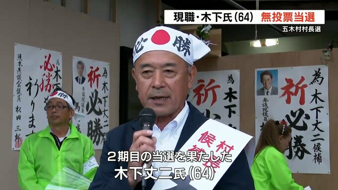 【村長選 無投票4期連続】五木村村長選挙 現職が無投票で2期目の当選 熊本 2023年10月4日(水) 11:58 国内 任期満了に伴う五木村(いつきむら)の村長選挙は現職の木下丈二(きのした じょうじ)さん(64)が無投票で2期目の当選を決めました。任期満了に伴う五木村(いつきむら)の村長選挙は、無所属で現職の木下丈二(…