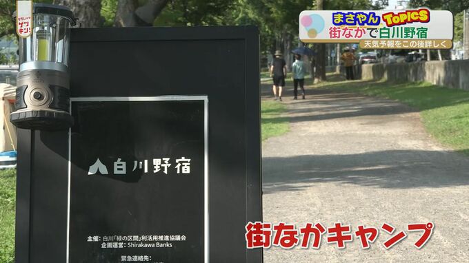 「きょうは『白川野宿』と言いまして白川の緑の区間というんですけれども、ここでキャンプを張れるというイベントをやっています」