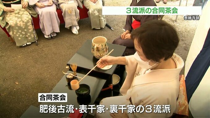 立田自然公園(たつだしぜんこうえん)の泰勝寺跡(たいしょうじあと)では3つの流派 肥後古流(ひごこりゅう)・表千家(おもてせんけ)・裏千家(うらせんけ)が一堂に会した茶会が開かれています。