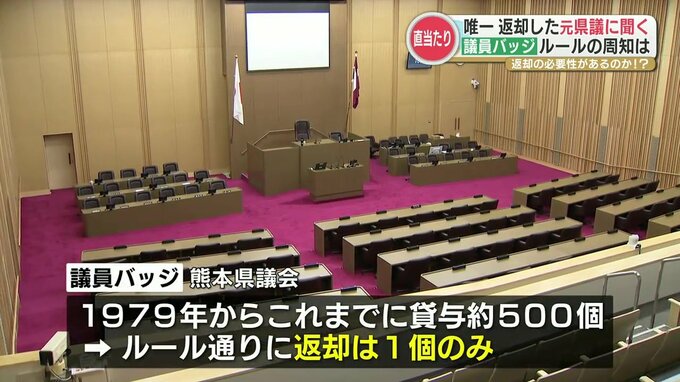 熊本県議会の「議員バッジ」は議員に「貸し出す」物でその購入費用は税金で1個およそ3万2000円。引退や落選などの理由で職を失った場合は返却するように定められています。