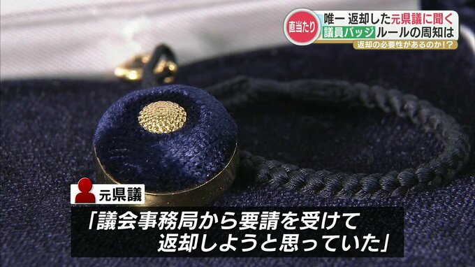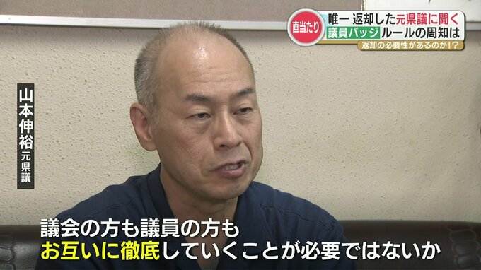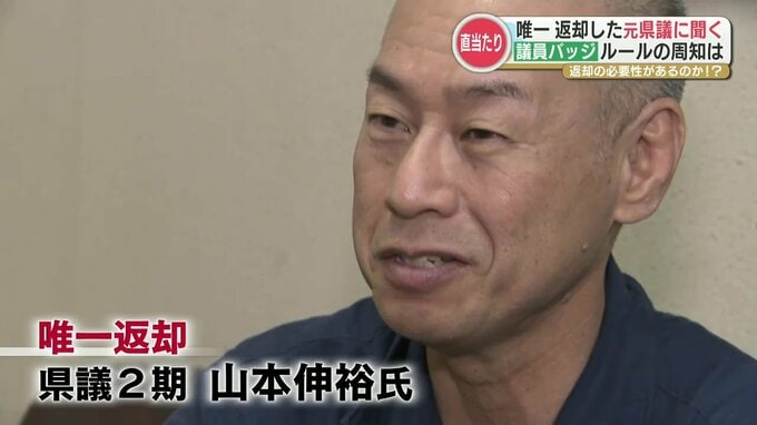 元県議会議員 山本伸裕さん「(当選後)この議員バッジは貸与ですと(事務局から)説明を受けて頂いておりました。『貸与』だから議員の資格を失ったら返さなければいけないなと思っていました」