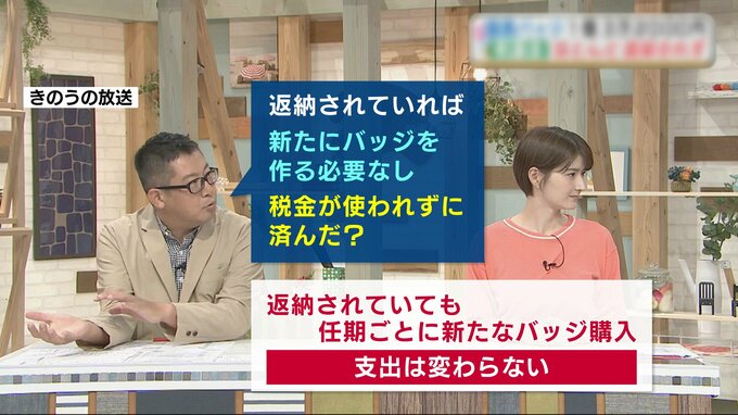 「返納されていても、任期ごとに新しいのを購入するため、返却してもしなくても支出は変わらない」