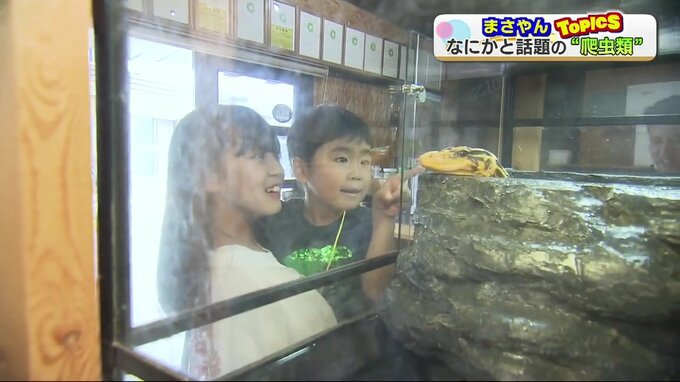 トカゲやカメ、ヘビなど、数十種・数百匹の爬虫類たちがいる、愛好家にも人気の店です。取材した日は休日ということもあり、お客さんがひっきりなしに訪れていました。