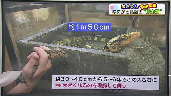 後生川アナ「オオトカゲを飼いたいと思う人は、これくらい大きくなるんだということを知っておかないといけないですね」