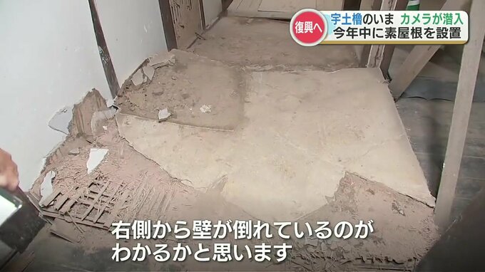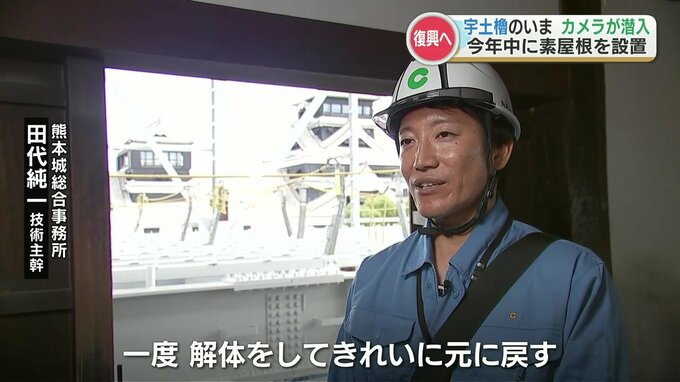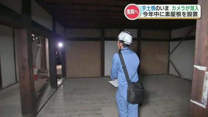 復旧工事のため素屋根(すやね)の設置作業が進む中、その内部にカメラが入りました。