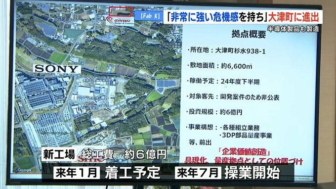 約6億円を投じて大津町に新設される工場は、来年1月に着工予定で、来年7月の操業開始を目指しています。