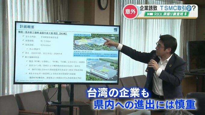 このように話し、立地協定の多くは既存の工場の増設や国内メーカーとの取引が主だとしTSMCと取引がある台湾の企業も県内への進出には慎重だと言います。