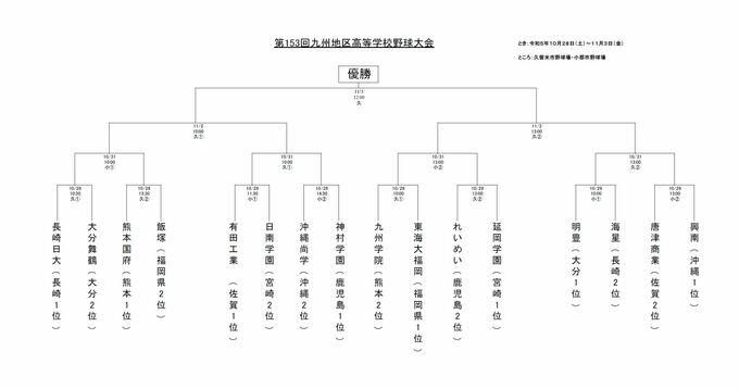 熊本1位代表の熊本国府は福岡県2位の「飯塚」と10月28日の第2試合(午後1時半)に久留米市野球場で対戦。