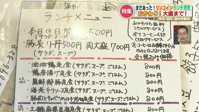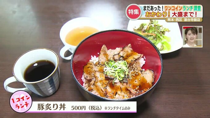 そして、まさかの豚炙り丼は“ごはん大盛り・おかわり無料”。他のランチメニューもリーズナブルなものばかり。もちろんどれも“ご飯・コーヒーはおかわり自由”です。