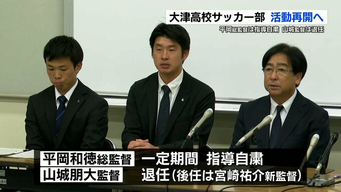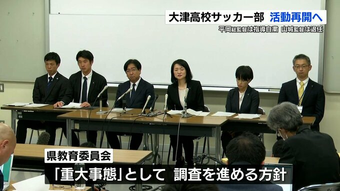 大津高校は10月20日夜、会見を開きサッカー部で起きた「いじめ」を受けて自粛していた部活動を再開させるとしました。