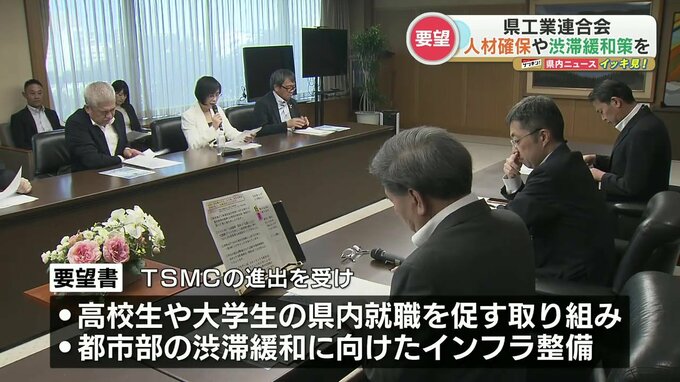 要望書ではTSMCの進出を受けて、高校生や大学生の県内就職を促す取り組みや、都市部の渋滞緩和など早急なインフラ整備を求めています。