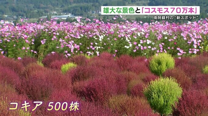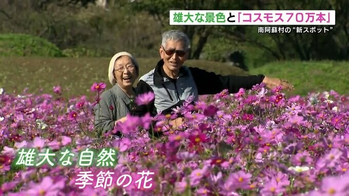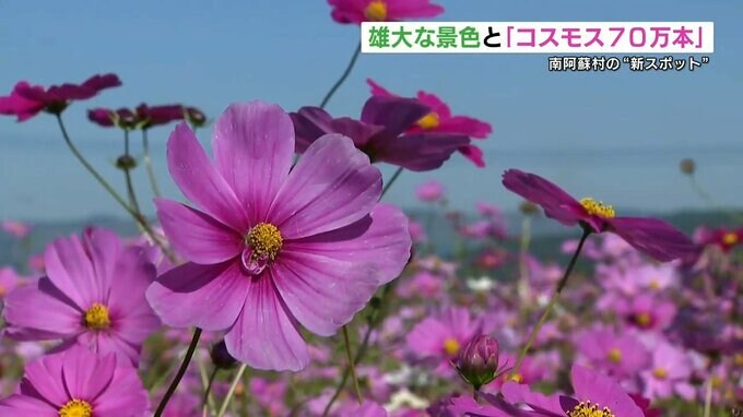 南阿蘇村では、約70万本のコスモスが満開の花を咲かせています。