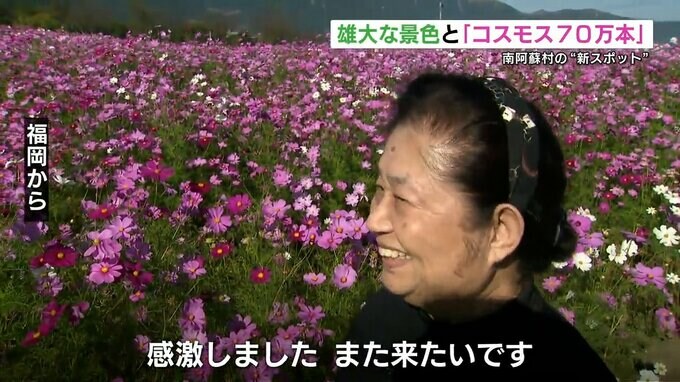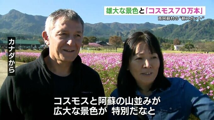 カナダから「素晴らしい。コスモスとこの阿蘇の山なみが広大な景色が特別だなと思いました」