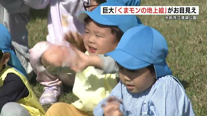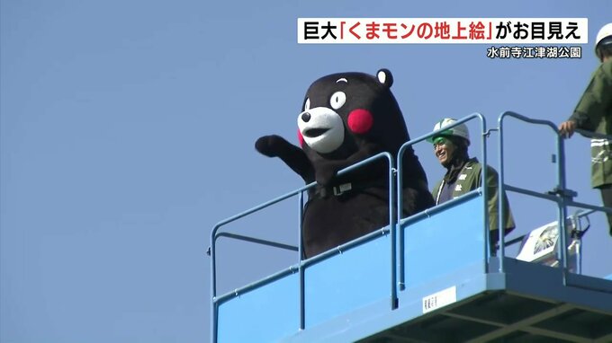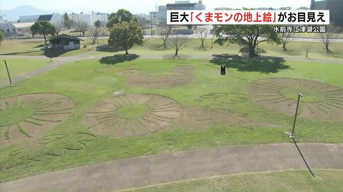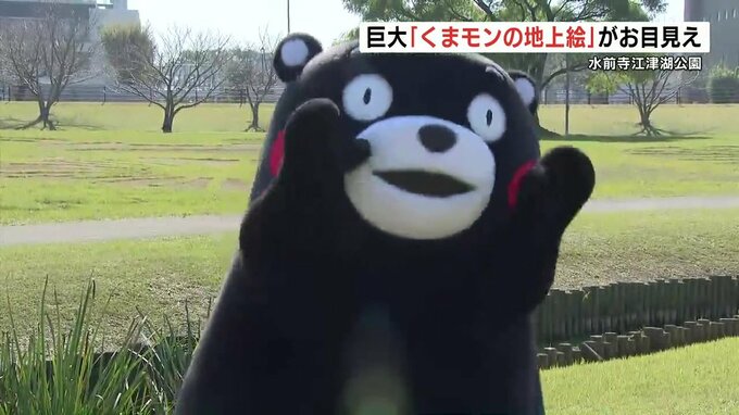 熊本市の水前寺江津湖公園に巨大なくまモンの地上絵が登場しました。