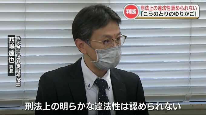 熊本市こども家庭福祉課 西嶋達也課長「刑法上の明らかな違法性は認められない」