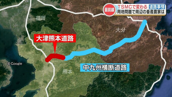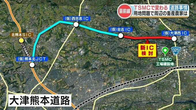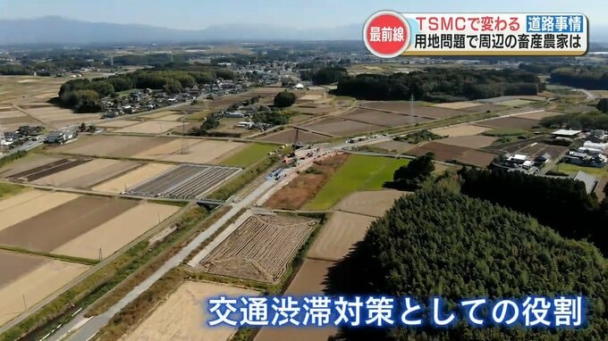 来年の操業開始に向け着々と工事が進むTSMCの熊本工場。その北側を通る予定の大津熊本道路は周辺の交通渋滞対策としての役割が期待されていて、新たな計画も発表されています。
