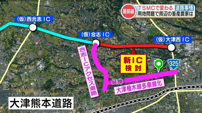 さらに元々設置予定だった合志インターチェンジとTSMC南側の県道を繋ぐ道路を整備し、県道の幅も広げる計画を明らかにしました。
