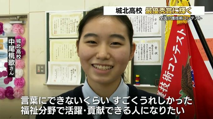 介護の技術を競う高校生の全国大会で城北高校の生徒2人が「最優秀賞」に輝きました。