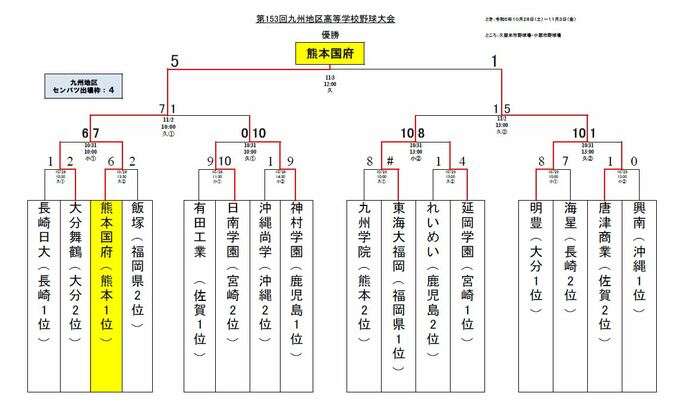 また、地区大会優勝校の熊本国府は、明治神宮野球大会に出場。