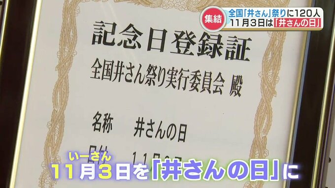 この日11月3日は全国から約120人の井さんが集まり「あるある話」などで盛り上がりました。