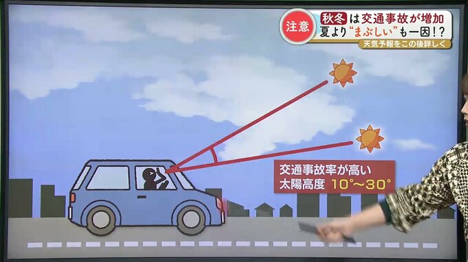 坂本アナ解説)日没が早くなるこの季節、交通事故の増加が懸念されます。ただ、そこには『まぶしさ』も関連しているかもしれません。
