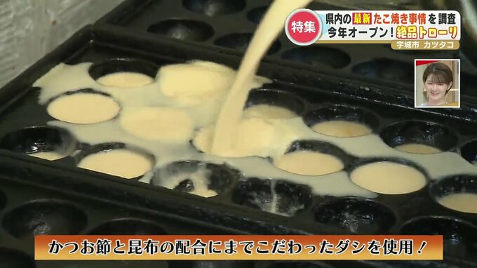 おいしさの秘訣は生地。かつお節と昆布の配合にこだわったダシを使用し、ソースをかけなくてもおいしく食べられます。