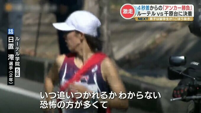 ルーテル学院 アンカー 日置澪選手(2年)「いつ追いつかれるかわからない、恐怖の方が多くて、怖いの一言でした」