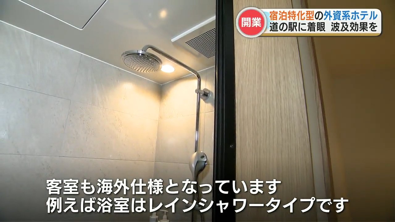 沖村アナ「客室も海外仕様となっています。例えば浴室はレインシャワータイプです」