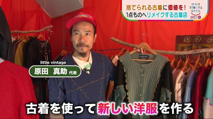 原田さん「古着を仕入れる中で、新しい洋服は要らないくらい古着があるので、僕だけでも新しいものに変えていけたらなという思いで」