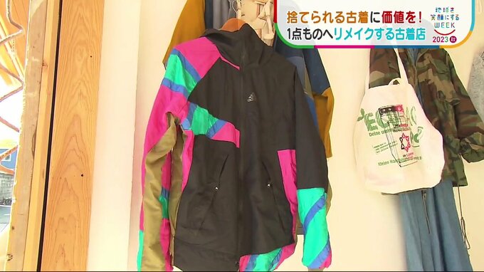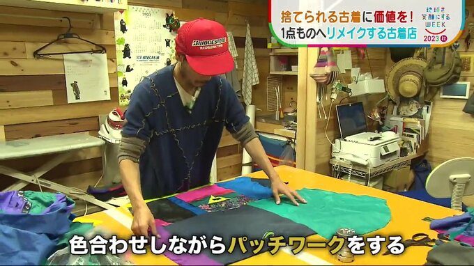 代表の原田さんは、自分で集めた古着を裁断し、様々な生地をつなぎ合わせて新たな服にリメイクしているのです。