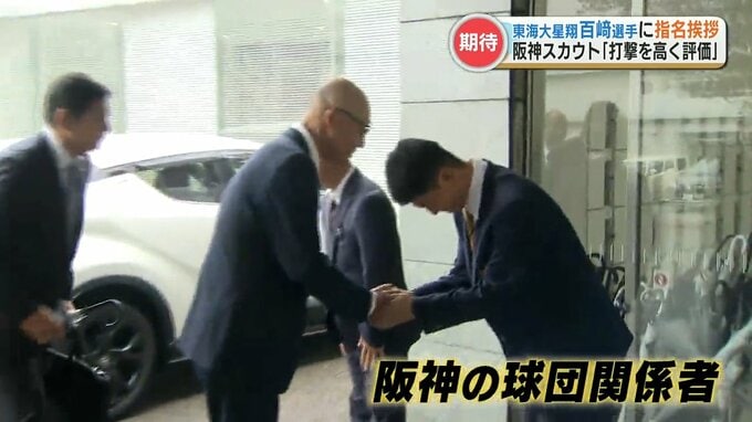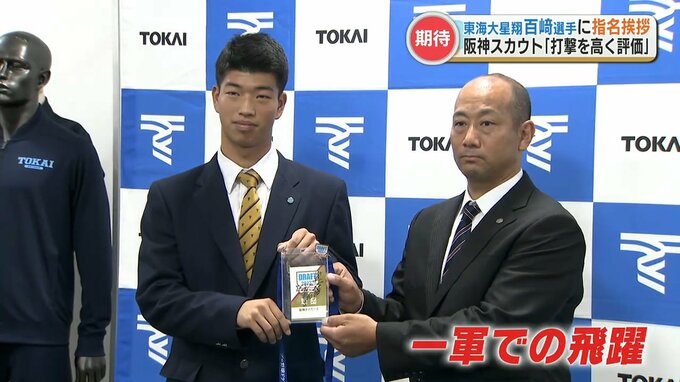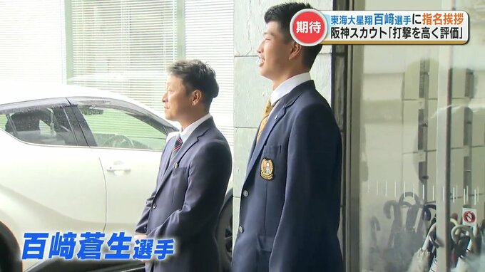 阪神タイガースからドラフト4位で指名を受けた東海大星翔高校の百﨑蒼生(ももさき あおい)選手に球団関係者が指名挨拶です。