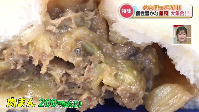 リポーター「あんは本当に甘さがあって、肉も結構大粒で肉汁のうま味が広がります。やっぱりもっちもちの生地が特徴的で、あんまり他ではないような生地ですよね」