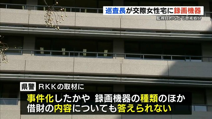 また熊本県警はRKKの取材に対し、巡査長の行為を事件として立件したかや巡査長が設置した録画機器の種類や設置日時のほか借財の内容についても答えられないとしています。