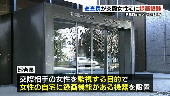 熊本県警によりますと巡査長は交際相手の女性を監視する目的で女性の自宅に録画機能がある機器を設置していたということです。