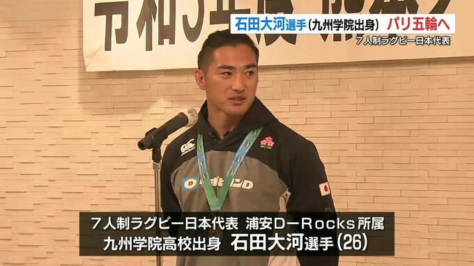 7人制ラグビー日本代表 パリ五輪へ石田大河選手「成長した姿を」 2023年11月26日(日) 11:53 国内 来年のパリオリンピック出場を決めた7人制ラグビー日本代表、九州学院高校出身の石田大河選手が熊本で意気込みを語りました。7人制ラグビーの日本代表、石田大河選手は、九州学院高校出身の26歳です。日本代表は今…